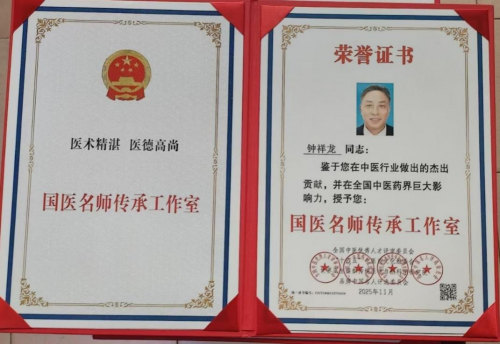 同年授予钟祥龙医师工作室为国医名师传承工作室