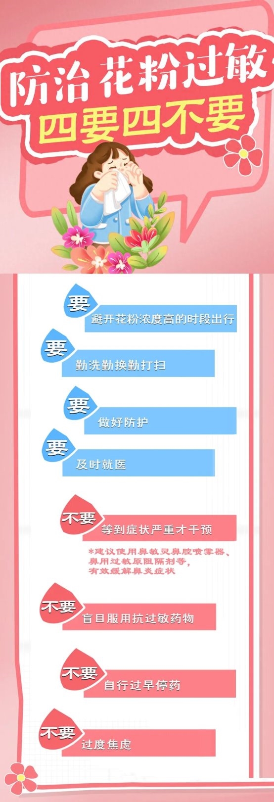 防治花粉过敏,牢记“四要四不要”春天到来,气温回升、草木萌发,花粉过敏也进入高发时段。
