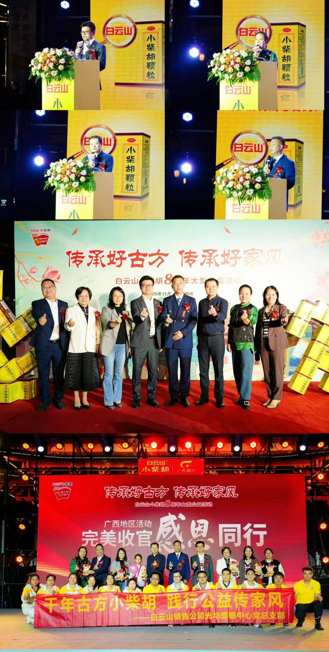 2025年11月15日晚,白云山小柴胡 “传承好古方 传承好家风”8周年大型公益活动来到了“龙城”广西柳州市。一方水土养一方人,柳州已经第七次获得了全国文明城市称号,这是一座文明之城、魅力之城、幸福之城、善治之城。景美人更美,文明和美的龙城儿女,也应运而生出许多动人的家庭故事。