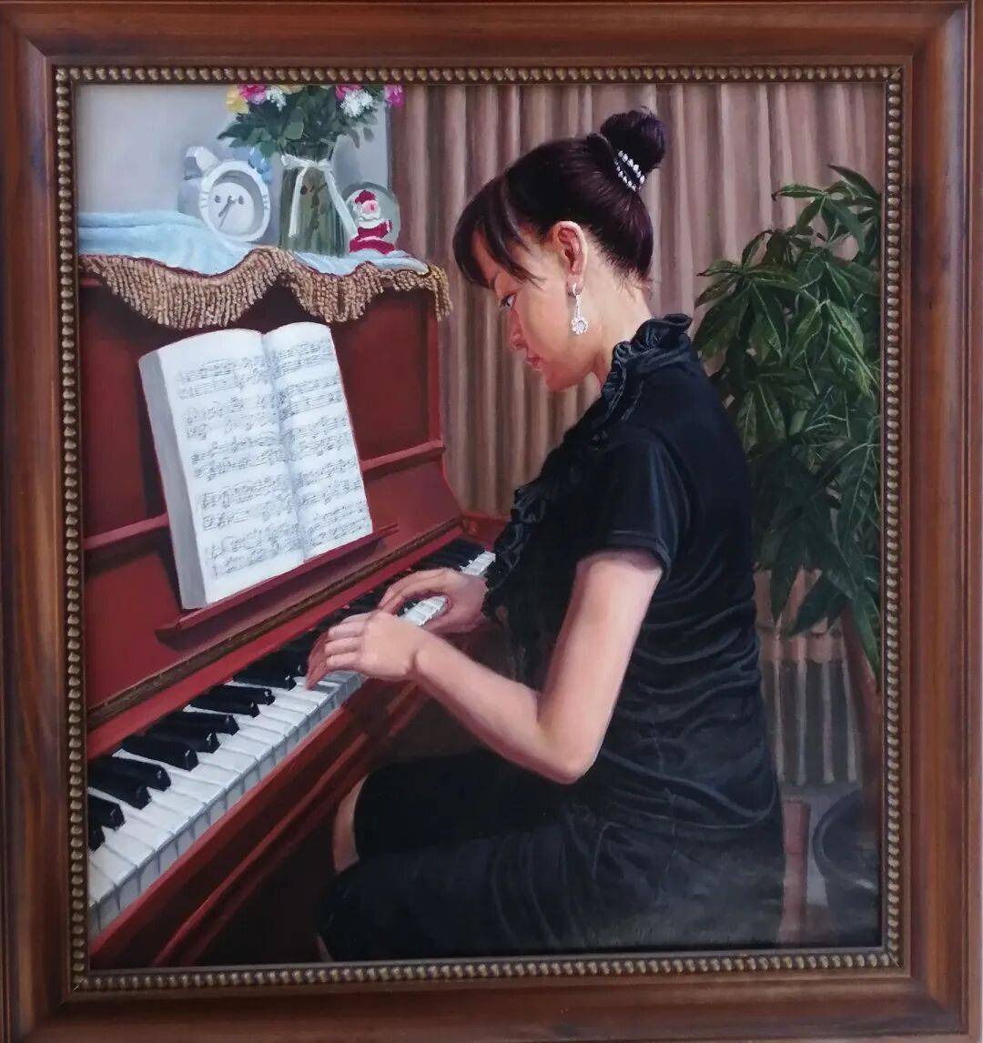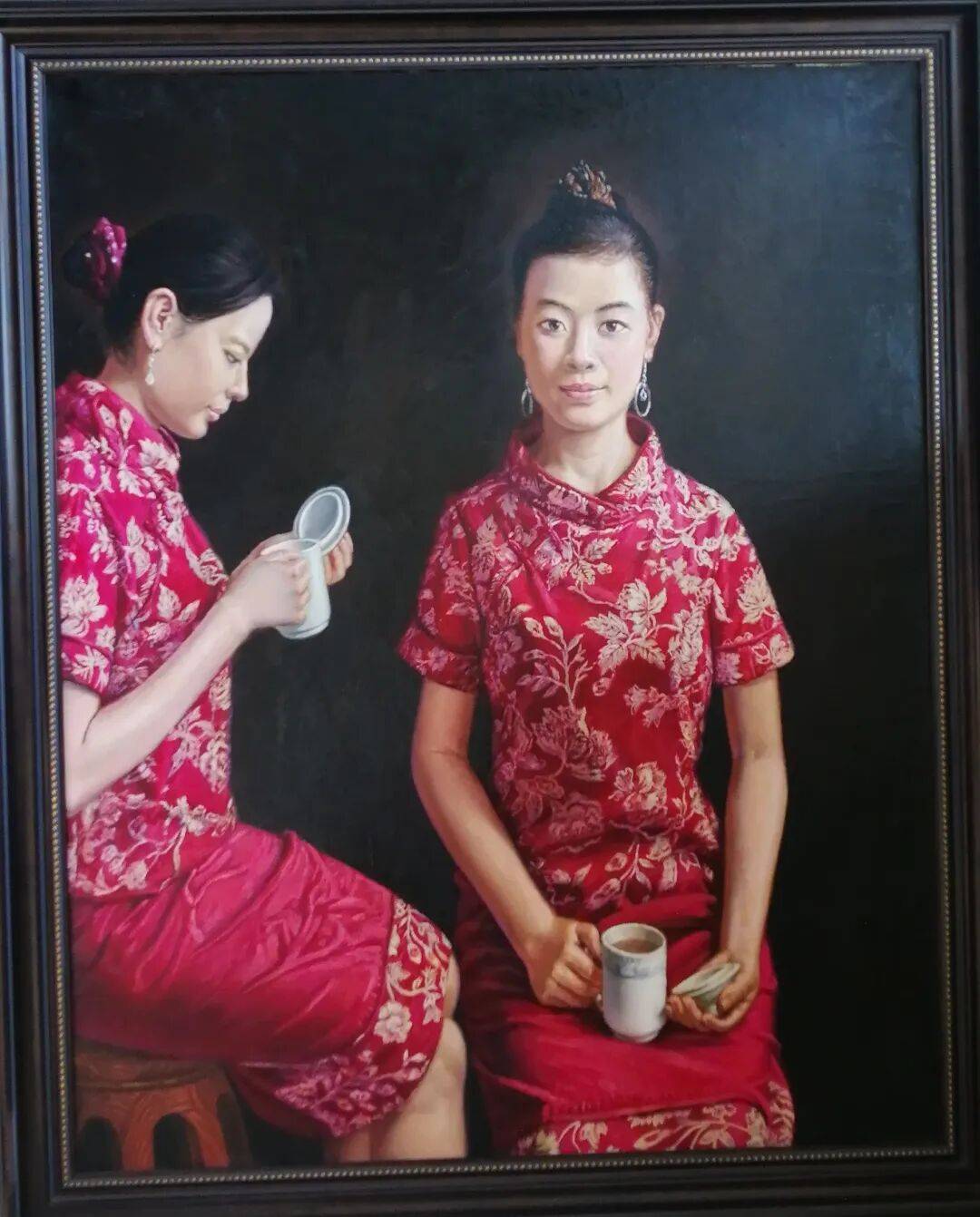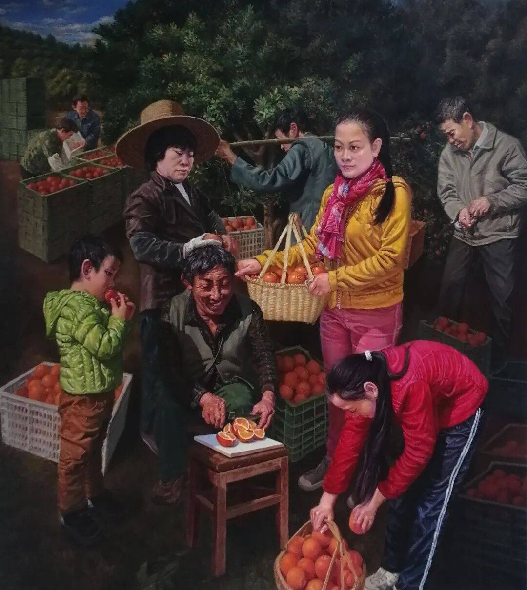 画家梁云碧(字馥榕),先后就读于广西师范大学美术学院和清华大学美术学院(研究生),师从忻东旺、郑艺教授等中国写实画派名家学习写实主义绘画,后向四川美术学院院长庞茂琨学习古典主义绘画,学业完成后画家对绘画有了独特的认识和理解,对艺术融会贯通并在日后的创作中走自己的创作道路,逐渐形成自己个人的绘画风格。例如其油画《红衣女子》采用古典主义和写实主义绘画的技法,运用艺术提炼的手法,塑造出一个具有生活美的艺术形象,通过棕红皮衣的色彩与人物姿态,传递出浓郁的生活气息与地域特色。 在《母与子》作品的创作中,明显融入画家个人的审美追求,采用了三角形构图使画面稳定,主体人物色彩采用黄、白、红暖色调,背景色的使用中则大胆运用绿色对比色,使形象主体更加突出;画面母亲与孩子相互倚偎在一起,双手相互触碰轻抚表现出亲昵感,使得画面具有动感气息,加上两人的目光看着画面外的观众,与观众产生情感的交流,打破了画面的呆板,画面彰显出写实主义和古典主义绘画的美感。梁云碧的作品多以家乡人文风光及风土人情(如生活景象、人物形象)为题材,个人代表作有《收获季节》、《母与子》,《采橘姑娘》、《抛绣球的姑娘》等。 作品欣赏:
